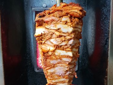 pita - Hummus. green chilli. Female turkey shawarma. cabbage salad. pickles. tahini on top. And glass fresh juice
